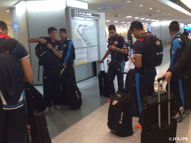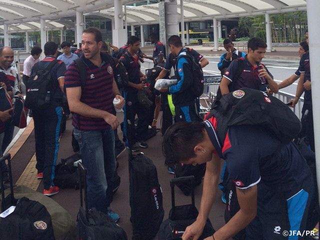 7月1日(水)にユアテックスタジアム仙台で開催される国際親善試合でU-22日本代表と対戦するU-22コスタリカ代表が26日、日本に到着しました。来日したチームは長旅の疲れを見せつつも、和やかな雰囲気で、その日はホテルで休養を取り、翌朝来日後初の練習を行いました。