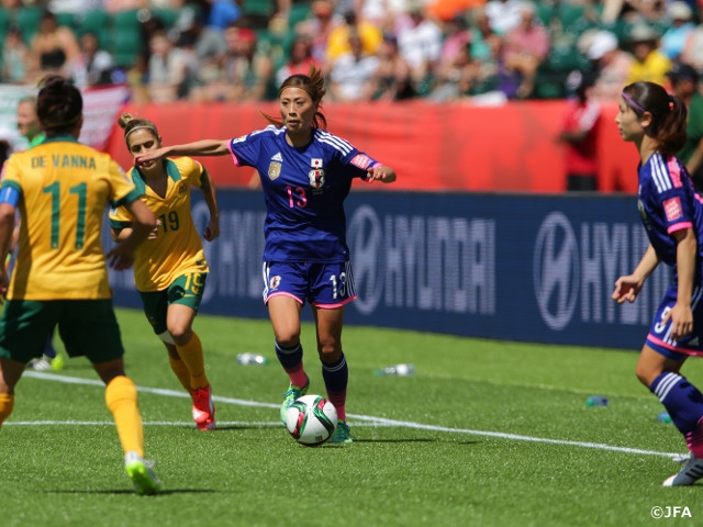 FIFA女子ワールドカップ カナダ2015で大会連覇に挑んでいるなでしこジャパンは6月27日、エドモントンのCommonwealth Stadiumで行われた準々決勝でオーストラリアと対戦し、途中出場の岩渕真奈選手(FCバイエルン・ミュンヘン)の87分のゴールで1-0の勝利を収め、2大会連続でベスト4進出を決めました。