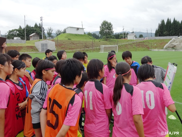 U-19日本女子代表候補は18日、今回のトレーニングキャンプでの練習試合初戦を、地元十日町市のクラブ、FCアルティスタ(男子中学生)と行いました。