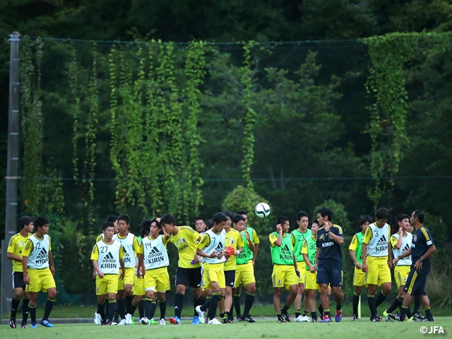 最初のミーティングで、森山佳郎監督から「第30回 日本クラブユースサッカー選手権(U-15)大会や海外遠征など疲労が溜まっている選手もいると思う。ただ、AFC U-16選手権2016本番までもう3週間しかないので、今回の遠征は非常に重要なキャンプになる。1回1回の練習を何より集中して、素晴らしい強豪相手とも対戦できる機会があるので皆で良い遠征にしよう」と選手に語りかけました。
