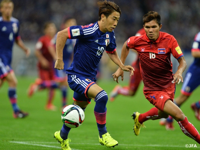 MF本田圭佑選手(ACミラン)が前半に先制し、DF吉田麻也選手(サウサンプトン)とMF香川真司選手(ボルシア・ドルトムント)が後半にそれぞれゴールを決めて、グループEでの成績を1勝1分けの勝ち点4として、6月11日のキリンチャレンジカップ2015イラク戦以来5試合ぶりの白星を手にしました。カンボジアは同予選3戦3敗です。