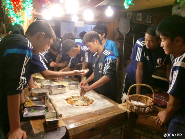 夜にはホテル主催のピザ作りでチームの結束がより固まりました。その後のミーティングでモンゴルの試合会場やホテルの状況、メディカル関連の注意事項を全員で確認し、この日の活動を締めくくりました。