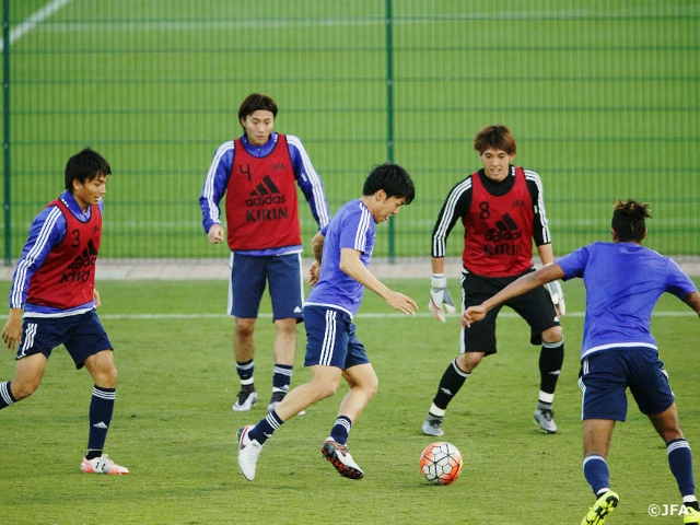気温23℃、カタールに比べ寒暖差が無く過ごしやすい気候の中、早速、午後の練習を実施。前日の試合に長く出場した選手はリカバリーメニューをこなし、それ以外の選手たちはボールを使ったトレーニングでしっかりと汗を流しました。