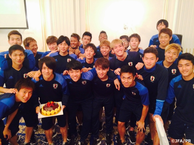グループステージの2試合を中2日で消化し、選手によって出場時間に違いがあることから、この日の練習はそれぞれのフィジカルコンディションに合わせたものとなりました。16日のタイ戦で股関節を痛めた鈴木武蔵選手は、手倉森誠監督の判断で練習には参加せず、ホテルで安静に努めました。