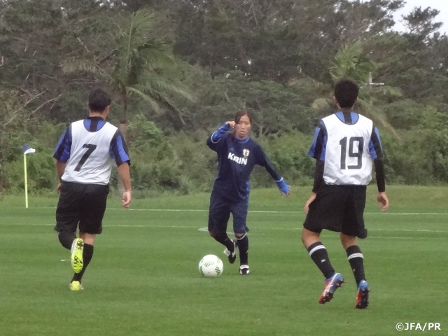 男子高校生や大学生が練習相手となることは、なでしこジャパンではおなじみの光景です。体格やスピード、間合いが異なる相手に対して身体を慣れさせること、対応を互いに確認することなどが狙いです。DF有吉佐織選手は「相手が速いなかでも、自分たちがきちんとボールを動かし、後ろからしっかり声をかけて展開することを意識しました。まだ判断が少し遅い部分があるので、パフォーマンスを上げていきたい」と振り返っていました。