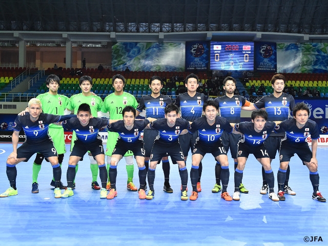 AFCフットサル選手権ウズベキスタン2016に臨むフットサル日本代表は2月17日(水)、現地時間19:00(日本時間23:00)にフットサルベトナム代表とノックアウトステージ準々決勝を迎えました。試合は両チーム、ノックアウトステージの緊張感からか、これまでとの試合の入り方、戦い方の違いもありこう着した状態が続きます。また、負けられない緊張感も手伝ってか、序盤は自分達のリズムで展開することができずなかなかベトナムゴールを奪うことができません。それでも前半8分には左サイドからの崩しで、仁部屋和弘選手(バサジィ大分)のゴールで先制すると、13分にも森岡薫選手(名古屋オーシャンズ)が追加点を奪い、2-0と優勢に試合を運びます。それでも前からのプレスを仕掛け、前がかりに攻めてくるベトナム代表に14分に失点を許し、2-1で前半を折り返します。後半に入ると日本のパス回しで試合を優位に進め、26分に仁部屋選手が追加点を決め3-1とベトナムを突き放します。しかし、35分、自陣で逸見勝利ラファエル選手(SLベンフィカ/ポルトガル)のドリブル突破を防いだベトナム代表が一気にカウンターを仕掛け、日本は失点を許し1点差に詰め寄られてしまいます。その後パワープレーを仕掛けてきたベトナムにまたも失点を許し、ついに同点に追いつかれてしまいます。前後半5分間の延長戦では、42分に、森岡選手が本日2点目となるゴールを奪い相手を突き放します。このまま後半に入り、試合が終了すると思われた49分、突き放されても諦めない姿勢で戦ってきたベトナムが左サイドから日本を崩し、再度同点に追いつきます。PK戦では森岡選手、仁部屋選手のシュートは不運にも得点にならず、PKを確実に決めたベトナムに1-2で破れてしまいました。