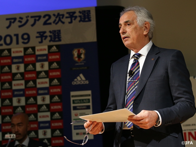 今回招集したのはJクラブから11名、海外クラブから13名の計24名。ハリルホジッチ監督は「2試合とも勝利することが最も重要なことであり、さらにここまで無失点で予選を戦ってきているので、それを継続していきたい。加えてできるだけ多くのゴールを奪えるよう準備したい」と冒頭に述べると、その後選出した24選手、一人ひとりをポジション毎に紹介し、各選手の現状、そしてこれから求めるものについて言及し、記者会見を終えました。