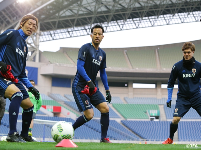 この日、チームは試合会場で冒頭15分を報道陣に公開して調整を行い、その後は戦術の確認を行いました。