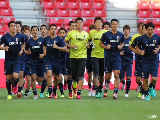 チームは1日、試合会場で公式練習に臨み、冒頭の15分以外を報道陣に非公開として戦術調整に時間を割きました。左膝裏に違和感を覚えているFW本田圭佑選手(ACミラン)はこの日も別調整でした。