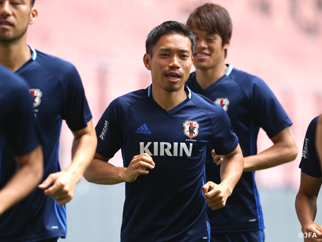 キリンカップサッカー2016初戦でブルガリアに大勝したSAMURAI BLUE (日本代表)は一夜明けた6月4日(土)、3日後の決勝戦へ向けて愛知県豊田スタジアムで練習しました。7日(火)の決勝ではボスニア・ヘルツェゴビナと対戦します。