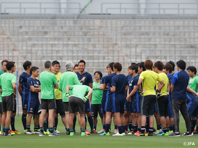 この日の練習では、冒頭15分以外を非公開として動きや戦術の確認に時間を割きましたが、故障を抱えて、ヴァイッド・ハリルホジッチ監督が起用見送りを示唆しているMF香川真司選手(ボルシア・ドルトムント)とFW本田圭佑選手(ACミラン)の姿はありませんでした。