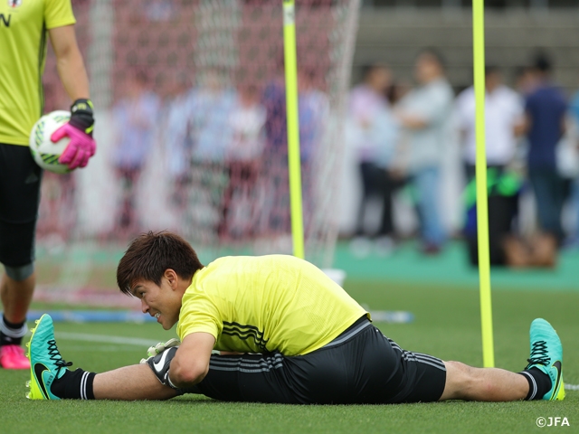 自分たちがどういうやり方で点を獲るか、みんなで意識を統一しました。PK戦も想定しておかないといけません。川島選手が代表チームに戻ってきて、刺激を受けながらトレーニングできていますし、代表に来ることで高い意識を保つことができます。GKは結果です。ワールドカップアジア2次予選で無失点という目標をクリアできて一つ自信になりましたが、本当に大事なのはこれからです。最終予選でも無失点を続けていければ、今まで見えなかった世界が見えてくるのではないかと感じています。そのためにも明日は、チームのために自分のプレーをどう活かすか、しっかりとイメージしながらやりたいです。