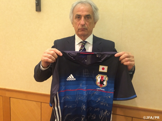 今回参加した25選手がそれぞれ自身のユニフォームにサインを添えたものをチャリティーオークションの品として提供してくれました。日本サッカー協会はこのユニフォーム25着とユニフォームにハリルホジッチ監督と25選手のサインを寄せ書きしたもの3着の計28アイテムにてチャリティーオークションを実施します。