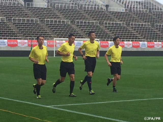 キリンチャレンジカップ2016 U-23日本代表対U-23南アフリカ代表の審判員がスタジアムにて前日練習を実施