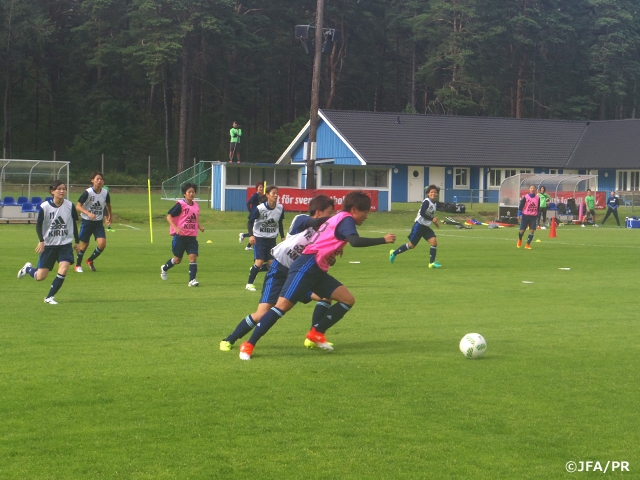 7月21日(木)にスウェーデン女子代表と国際親善試合を行うなでしこジャパン(日本女子代表)は18日(月)、試合の開催地であるスウェーデンのカルマル市に到着し、トレーニングを開始しました。