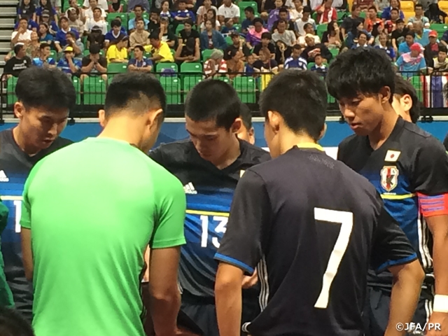 カザフスタン代表は、個人の体格を活かしながらも、多彩な攻撃を仕掛けてくるタフなチームで、時折フィールドプレーヤーのように攻撃参加するゴレイロの存在も日本を惑わす脅威となります。若手選手主体のチーム構成で今大会に臨んでいる日本は、経験値で勝るカザフスタン代表に常に全力でプレーする姿勢を持って勝負に挑みます。しかし前半開始1分に相手の攻撃の勢いを断ちきれず、失点を許してしまいます。その後もゴールを狙い、惜しいシーンを作るも前半だけで4失点を喫してしまいます。ハーフタイムに鈴木隆二監督は「100%の力でなく、120%の力で戦いにいこう。この失点に恐れること無く相手に立ち向かっていこう」と選手を鼓舞し、ピッチに送り出します。