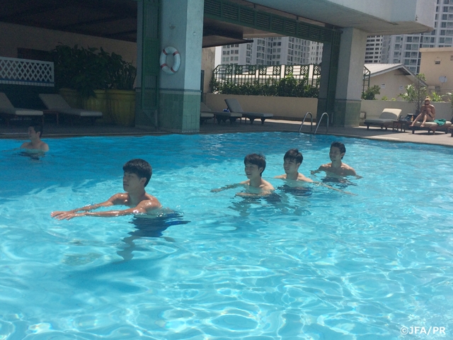 タイ代表戦、カザフスタン代表戦の連戦の疲労を回復させるリカバリートレーニングがメインでした。2試合が終わって、できたことやできなかったことを整理して、明日のイラン戦に向けてチーム全員が一つとなって全力で挑んで行きたいと思います。