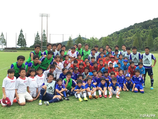 また、本日トレーニング後に鹿児島県サッカー協会のご尽力にて、地元鹿児島県内の小学校3年生、4年生のサッカー少年少女たちと交流をすることができました。 常に笑顔が溢れる環境で、選手たちも、サッカーを通じながら良い思い出の時間となりました。