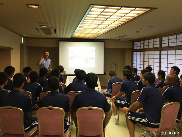 夕食後には、手倉森浩ナショナルトレセンコーチから、東日本大震災の話含め貴重な話をして頂き、本日の活動は終了しました。