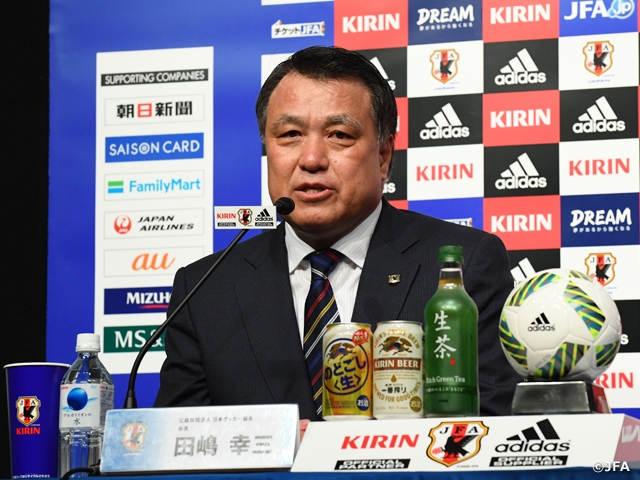 今年、我々が一番の目標としてきた2018 FIFAワールドカップ最終予選が9月から始まります。このワールドカップ出場を勝ち取るという気持ちを前面に、最初から出して戦っていかななければ、来年まで続く最終予選は勝てません。我々JFAはすべての力を結集して戦っていきます。