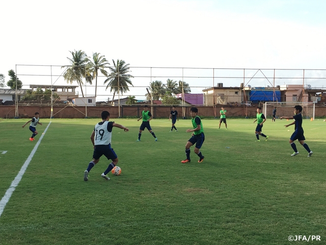 いよいよFIFA U-17ワールドカップ2017出場を目標にした闘いの場所であるインド・ゴアに到着しました。5月末にシミュレーション遠征でホテルやインドの環境を一度経験したので、懐かしさもあります。この経験を活かしたいと思います。さすがに移動の疲れもありますが、本日のトレーニングも選手全員が集中して行い、良い雰囲気で調整できていると思います。連携面の課題は、コミュニケーションを多く取ることで改善できて良かったです。結果が求められる大会なので、この良い雰囲気のままチーム一丸となって初戦まで準備していきたいです。