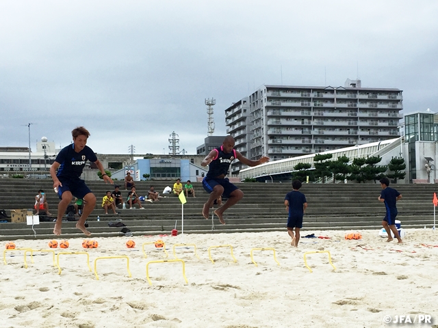 ビーチサッカー日本代表は、9月13日(火)兵庫県明石市で、17日(土)と18日(日)に行う国際親善試合に向けて活動を開始しました。