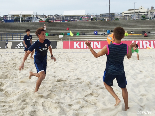 ビーチサッカー日本代表 実践形式のトレーニングで汗を流す
