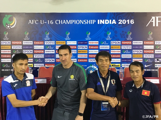 またこの日は、Bグループ4チーム(日本、ベトナム、オーストラリア、キルギス)の監督が揃い、試合会場のGMCスタジアムで公式記者会見が行われました。会見の最後には、互いの健闘を祈り合い、監督同士が握手を交わしました。
