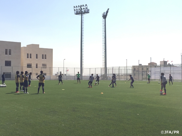 ヨルダンへ到着して5日目のU-17日本女子代表は26日(木)、28℃という気温の中で午前中のトレーニングをスタートしました。前日のフレンドリーマッチに出場したリカバリー組とトレーニング組に分かれて、精力的に練習を行いました。