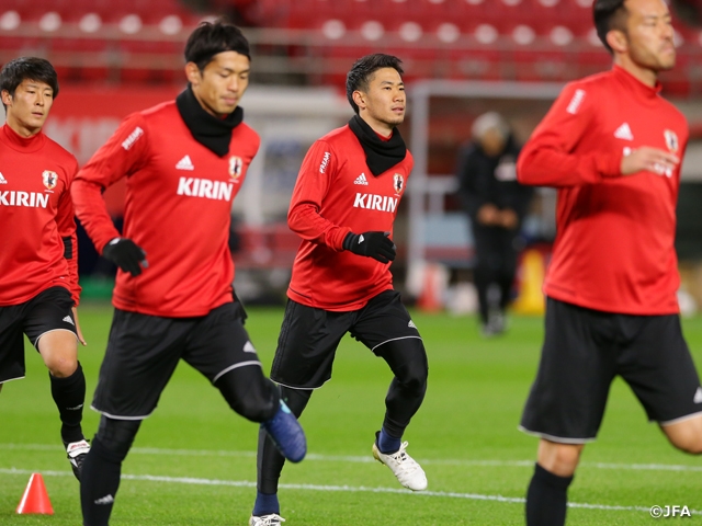 チームはこの日、試合会場の茨城県立カシマサッカースタジアムで試合前の最終調整を実施。冒頭の15分以外を非公開にして、オマーン戦の戦術確認を行いました。