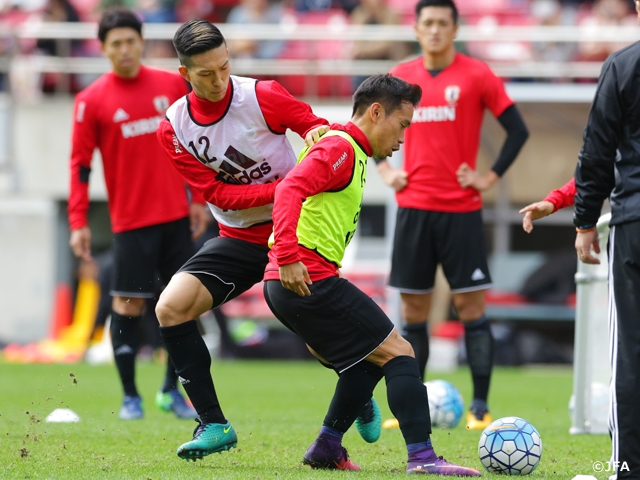 SAMURAI BLUE(日本代表)は11月12日(土)、キリンチャレンジカップ2016のオマーン代表戦から一夜明けてカシマサッカースタジアムで練習を行ない、試合で控えだったメンバーを中心に、3日後に控える2018 FIFAワールドカップアジア最終予選のサウジアラビア戦へ向けてじっくりと調整しました。