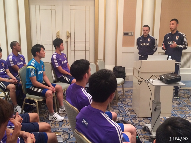 先週8~10日に行われたキャンプに引き続き、今回のキャンプも18名の選手たちが集合し、前回からは6名の選手が入れ替わりました。今回のキャンプ開始時のミーティングでは、ブルーノ・ガルシア フットサル日本代表監督から、選手たちへ激励とともに、このU-19フットサル日本代表がどのようにトップの代表と関わっていくのか、今後の展望を説明すると同時に日本代表とU-19日本代表がリンクし、同じ戦術コンセプトを持ちながら来年5月のAFC U-20フットサル選手権に繋げてほしいと、メッセージが送られました。