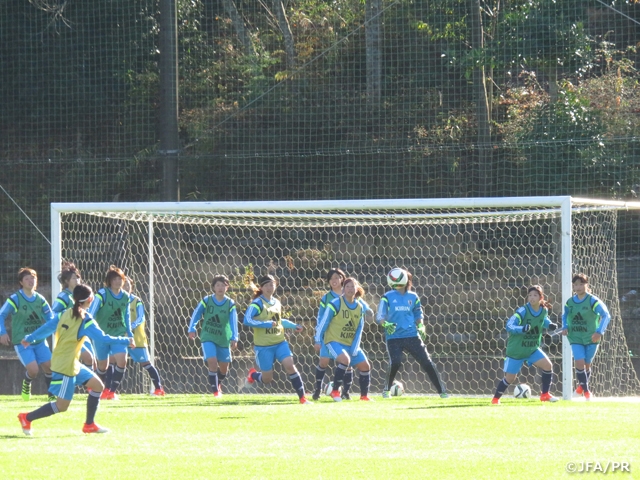 2日目は午前に「守備」、午後は「攻撃」をテーマにトレーニング。選手たちは異なるテーマに対して実践を意識するよう伝えられ、5対5のゲームやシュート練習などを実施しました。ミーティングでは、トレーニングの振返りを行い、『世界基準のプレー』、『常に練習の狙い、目的を意識すること』の重要性などが伝えられました。また、この日誕生日だった堀江美月選手(静岡産業大)をケーキとともにサプライズでお祝いました。