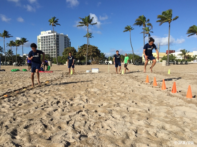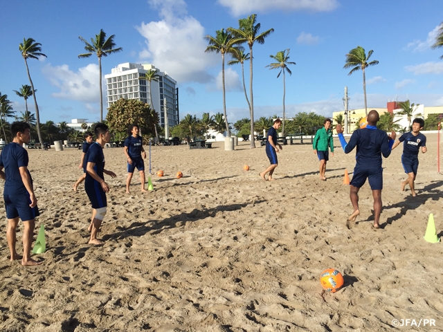アメリカ・コスタリカ遠征を行っているビーチサッカー日本代表は1月13日(金)、アメリカでの合宿3日目を迎え、翌日から始まるアメリカ代表戦に向けてこの日も午前と午後の2部練習を行いました。