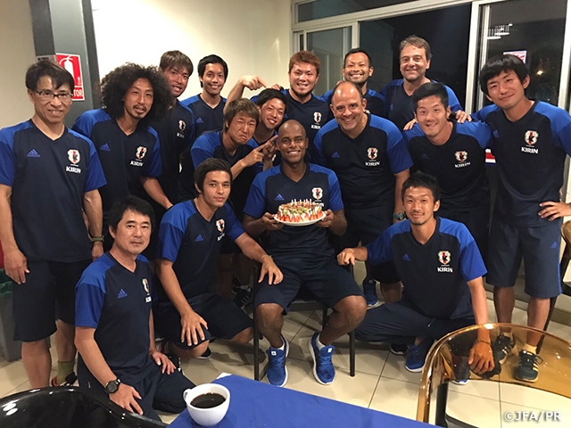 また夕食時には、1月21日に31回目の誕生日を迎えた茂怜羅オズ選手を、ケーキと共にチーム全員で祝福しました。