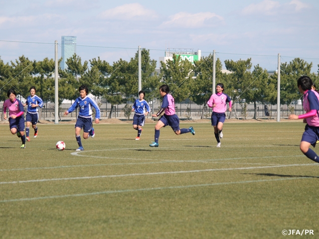 U-16日本女子代表候補はトレーニングキャンプ西日本の最終日を迎えた19日(日)、大阪学芸高校とのトレーニングマッチをJ-GREEN堺S2ピッチ(大阪府堺市)で行いました。