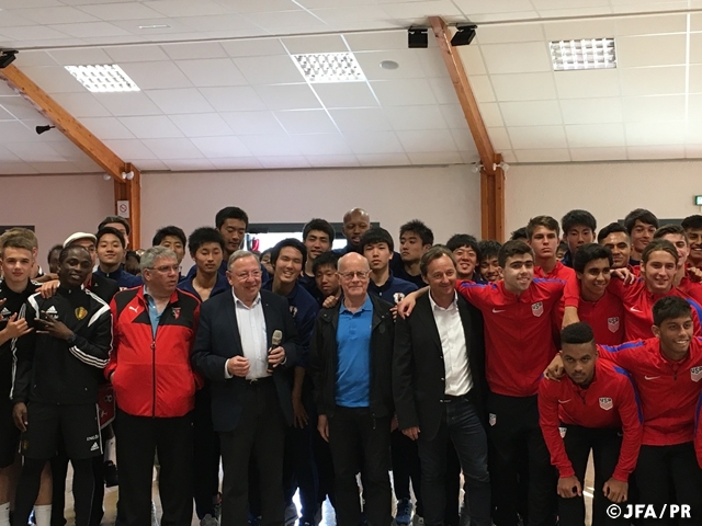 夕方にはモンテギュー国際大会の開幕戦、U-16ベルギー代表とU-16アメリカ代表の試合を全員で観戦し、明日からの対戦相手を自ら確認しました。いよいよ明日、U-16日本代表は初戦のU-16ベルギー代表戦に臨みます。