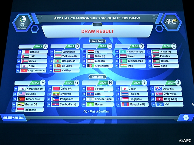 AFC U-19選手権2018予選 組み合わせ決定