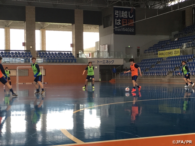 4日目を迎えたU-20フットサル日本代表キャンプ、午前は前日のトレーニングマッチで出た課題修正に取り組み、定位置攻撃の振り返りと3対3、最後にゲーム形式の紅白戦で約2時間のトレーニングを終えました。今後も選手の疲労度合いを見ながらコンディショニング調整にも努め、全体のベースアップを図っていきます。午後はこれまでの疲労を回復させるためトレーニングをなくし、チーム全体で、リフレッシュの時間に当てました。