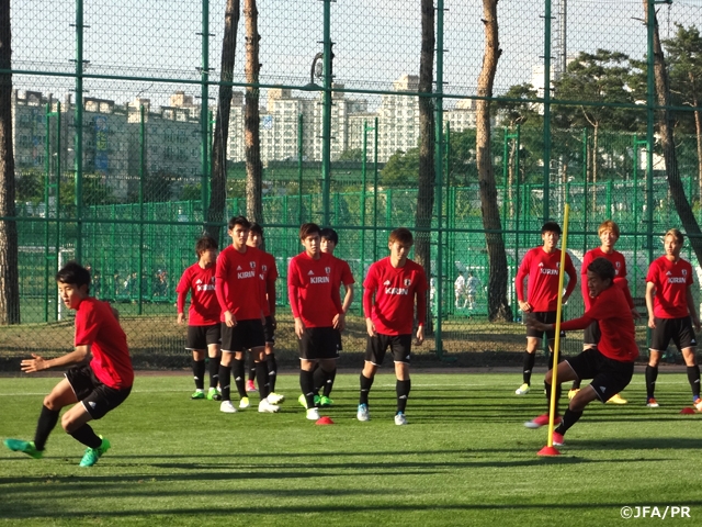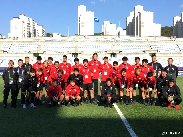 FIFA U-20ワールドカップ韓国2017のグループステージ第3戦・対イタリア戦を控えたU-20日本代表は26日(金)、Cheonan市内でトレーニングを実施しました。チームミーティングを終えると、まずは試合会場を視察し、ピッチの感触を確認。その後、練習場に移動し、セットプレーや組み立て、ゲーム形式のメニューで最終調整を行いました。