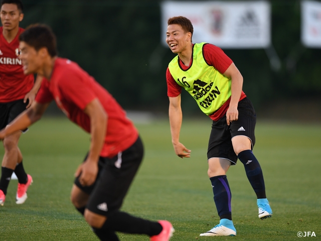 練習2日目で身体への負荷はかかっていますが、他の選手ともコミュニケーションを取りながら楽しくトレーニングができています。個人としては、所属クラブでのシーズンは簡単なものではありませんでした。嬉しいより悔しい気持ちの方が強かったです。クラブは優勝して1部昇格を果たしましたが、最後の3試合は自分は出られませんでした。もっともっと努力しないといけない、と悔しい気持ちをもって日本代表に合流できたことをプラスに捉えたいと思います。日本代表では裏への抜け出し、ゴールに直結するプレーを求められていると思いますし、チームメイトも同じだと思います。来月の試合は難しい試合になると思いますが、自分がピッチに立つことができればゴールという結果を求めたいです。
