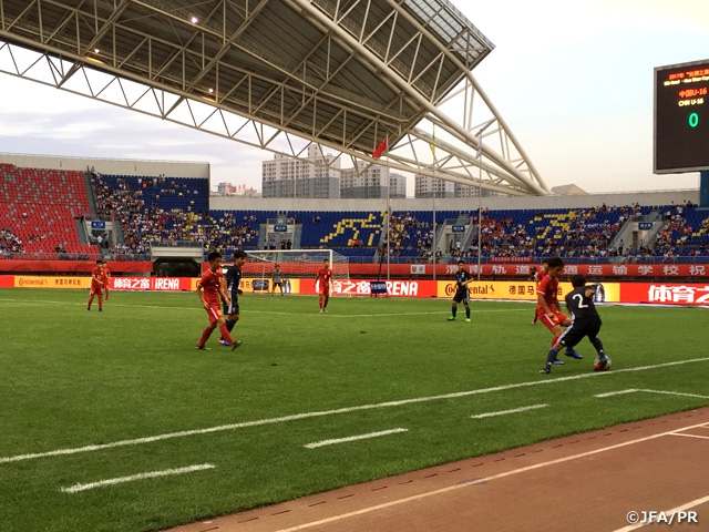 「Silk Road・Hua Shan Cup CFA International Youth Football Tournament Weinan 2017」に出場するU-15日本代表は7月13日(木)、大会第1戦で開催国のU-15中国代表と対戦。気温33度、かつ10,000人以上のサポーターが駆けつける完全アウェイの雰囲気の中で戦いました。