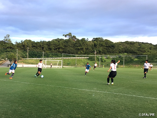 静岡産業大学とのトレーニングマッチでは今回のキャンプの集大成として臨みました。2日前の日ノ本学園高等学校との試合と同様、チームとして良い形で試合に入れたと思います。しかし、全員が共通意識として持っているニアゾーンを狙うことや3人目の動き出しが合わない部分も多くありました。これからの課題を一人ひとりが忘れずに自チームで毎日のトレーニングに励み、AFCU-16女子選手権に向けて良い準備をしていきたいです。