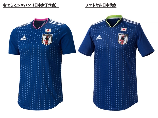 また、なでしこジャパンおよびフットサル日本代表の新ホームユニフォームも同時に発表し、襟元のカラーがSAMURAI BLUEとは色が異なります。