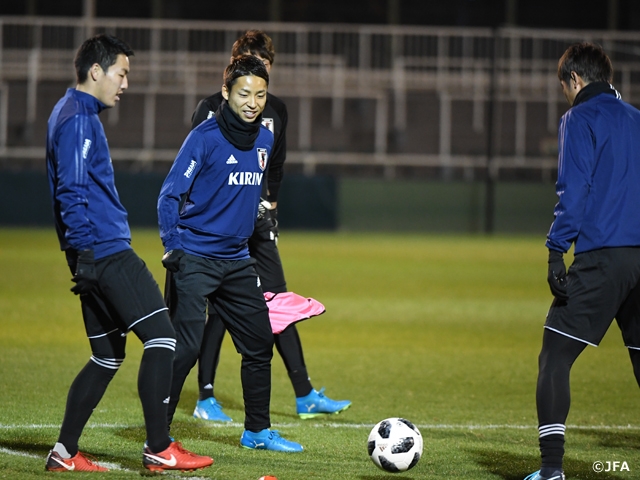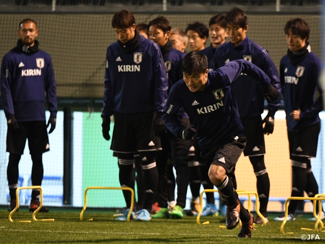 SAMURAI BLUE(日本代表)は12月6日(水)、3日後に初戦を迎えるEAFF E-1サッカー選手権決勝大会へ向けて東京都内で練習を行ない、大半を今合宿では初となる非公開として入念にプレーを確認しました。