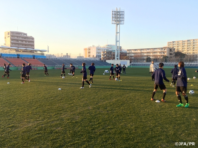 初日のこの日は、ボールコーディネーションやアジリティサーキットなどコンディショニングメニューを重点的に実施。走力テストを行うなど約90分のトレーニングを終えました。