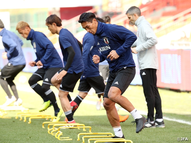 しかし、右内転筋の違和感を訴えているFW大迫勇也選手(1.FCケルン)は前日に引き続いて別メニューでの調整で、MF大島僚太選手(川崎フロンターレ)とDF宇賀神友弥選手(浦和レッズ)は練習には参加しませんでした。