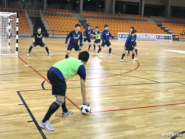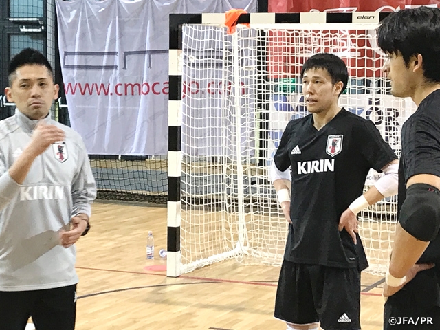 翌26日(月)には早速トレーニングを開始。午前中は長時間のフライト移動の疲れと時差もある為、リカバリートレーニングを中心に約1時間しっかり汗を流しコンディションを整えました。トレーニング開始前のミーティングでは、ブルーノ・ガルシア監督より今回の遠征の目的と、2月のAFCフットサル選手権を終え、その経験をベースにチームは2020年のフットサルワールドカップに向けたチームの再構築期間となることが選手たちに伝えられました。