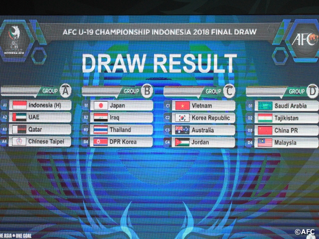 AFC U-19選手権インドネシア2018 組み合わせ決定