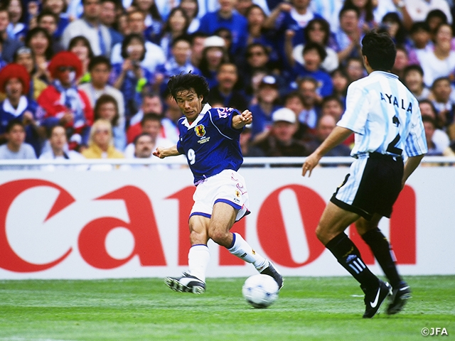 日本が初めてワールドカップの舞台に立った1998年フランス大会。グループステージ2連敗で敗退が決まった中、リヨンでの第3戦ジャマイカ戦を迎えた。0-2とリードを許した後半、3戦目にして日本の初ゴールは生まれた。本大会51本目のシュートであった。